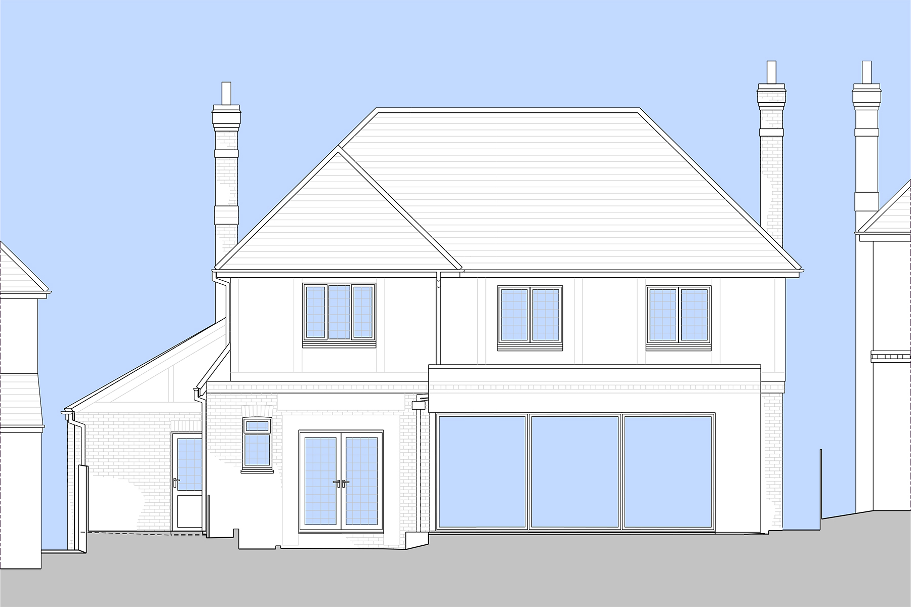 Planning permission has been successfully granted for a substantial rear extension and comprehensive internal remodelling of a distinctive 1930s detached house, located within one of Brighton’s Conservation Areas.