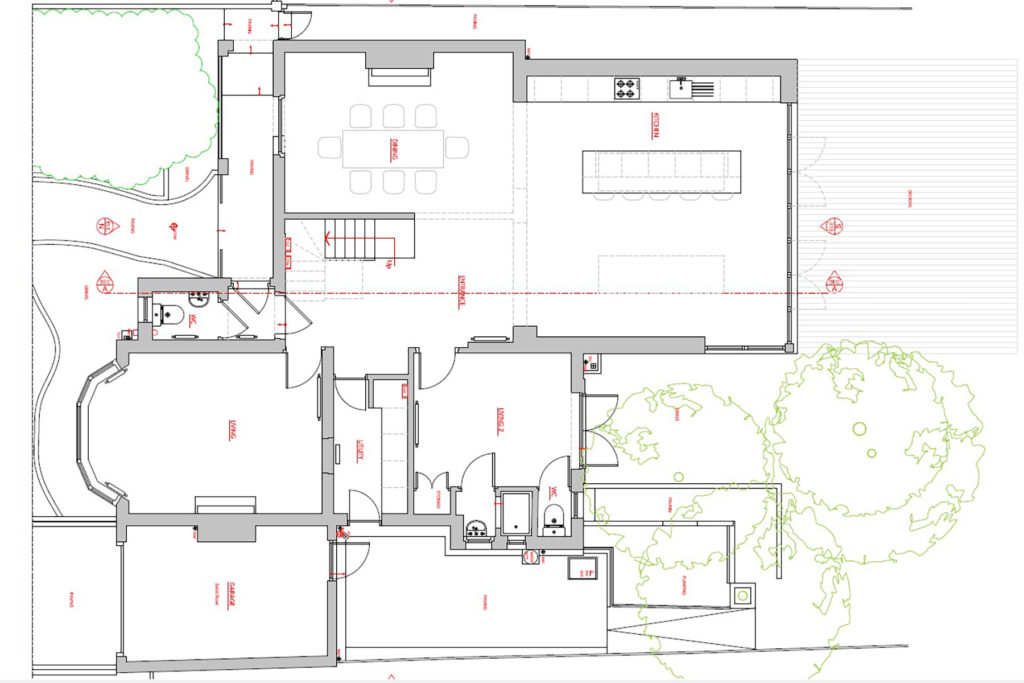 Originally divided into two separate apartments, the existing layout of the property has become fragmented over time. The approved design seeks to reunify the home, converting the flats back into a spacious and coherent family residence. The new plan rationalises the internal arrangement, creating a natural flow from the entrance through to the rear of the property, culminating in expansive views of the south-facing garden.